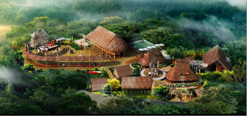 基诺族设计,我们充分考虑基诺原有的元素结合建筑结构,用基诺族小品道具来点缀整体氛围。从而突出基诺热情民族传统。