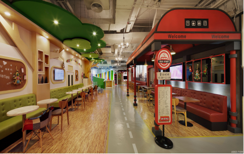 其次,好的儿童主题餐厅设计中,应该对颜色的搭配更加着重。因为确定是要做孩子的餐厅,那么装修颜色就应该偏鲜亮,有活力。室内装修中更应该有巧思秒想,比如最好加上一个简单的儿童室内游乐园,如果只是主对题上的设计,可能就只有特色而没有吸引孩子的地方了。所以,儿童主题餐厅设计必须要有趣味和有可玩性,它不能只做餐厅设计,可能还要加入相当部分的游乐性设计。
